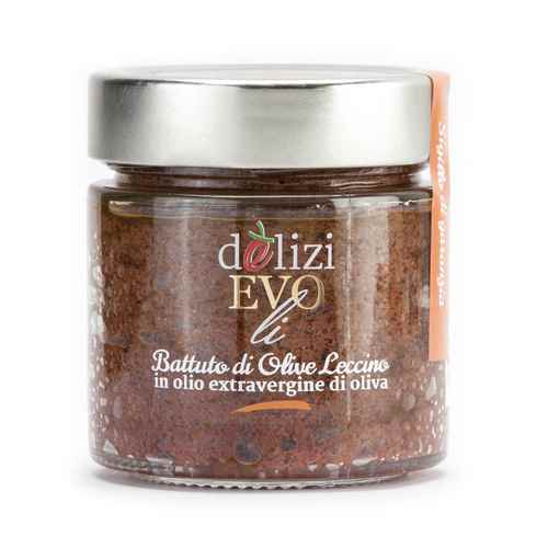 Le tipiche olive nero-rosate donano a questo battuto un sapore dolce e delicato. Ideale per bruschette, snack sfiziosi, panini e rafforzare il gusto di sughi e salse.